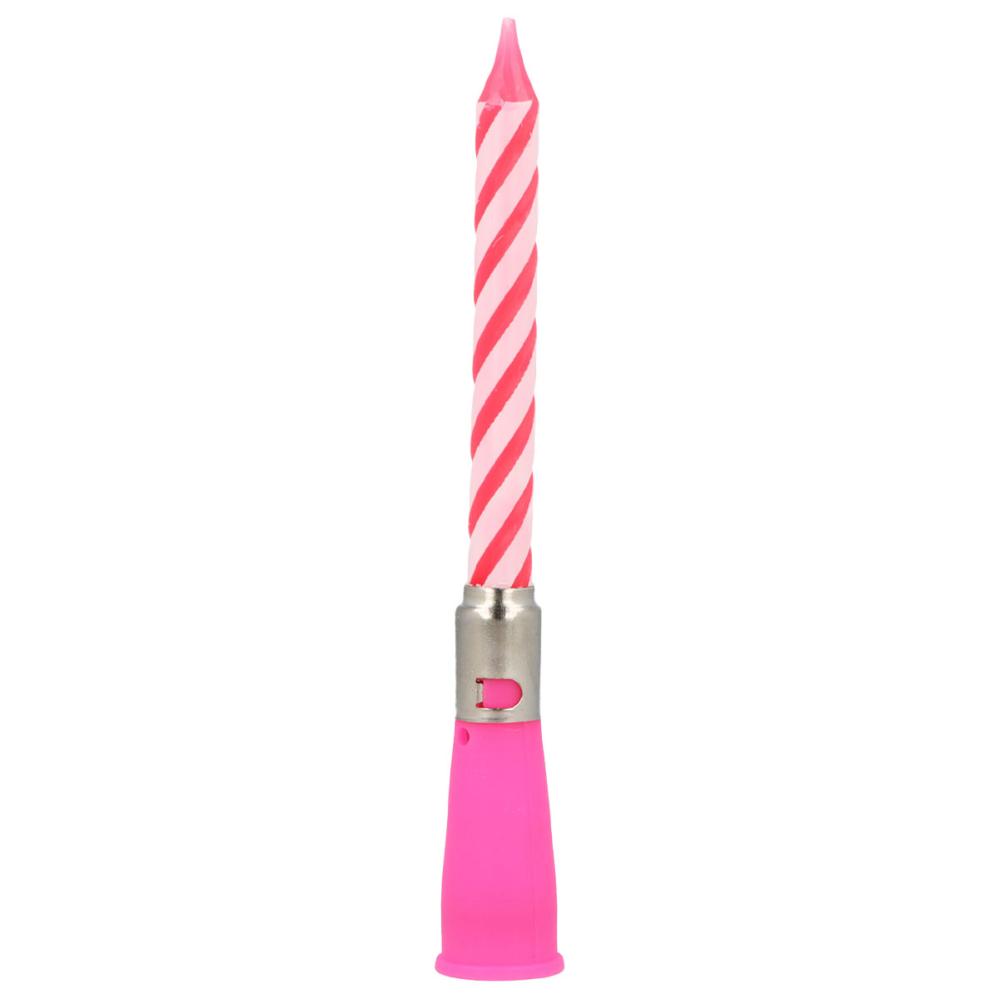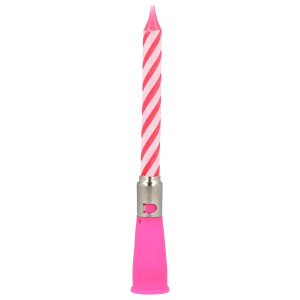 Gør fejringen sjovere med et kagelys med musik, som går i gang direkte, når du drejer på holderen. Dette fødselsdagslys med lyd kombinerer en lysholder med et lyserødt og hvidt spiralformet lys. Et musiklys, der skiller sig ud.
