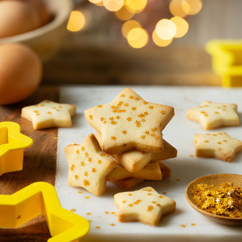 Giv desserterne et rigtigt pift med spiselige stjerner til at dekorere både cupcakes og lagkager til nytårsbordet og bryllupsbordet. De skinnende gyldne stjerner passer også perfekt til en elegant og festlig studenterborddækning.