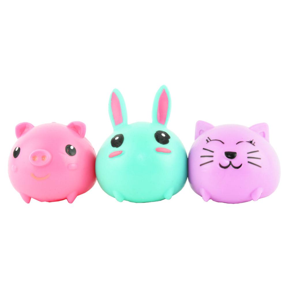 Splatbold Dyr inkluderer en sjov stressbold i form af et sødt rundt dyr, der bliver fladt, når du kaster det på gulvet eller på væggen, og som derefter vender tilbage til sin oprindelige form. Splatbolden er ca. 6 cm stor og findes som rosa-lilla kat, turkis kanin eller rosa gris, hvilken du får bliver en overraskelse.