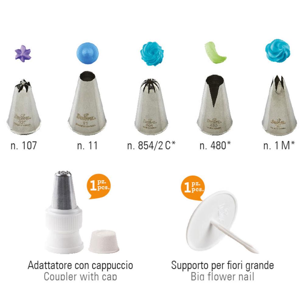 Skab smukke dekorationer med dette sprøjtesæt, som indeholder flere funktionelle tyller, en praktisk tylkobling og en blomstersøm til præcist arbejde. De medfølgende sprøjtetyller gør det nemt at forme hvert bagværk.