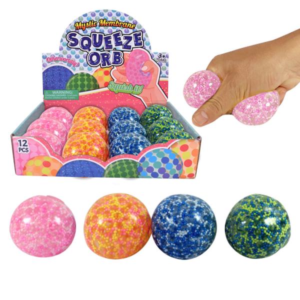 Squeeze Stressbold består af en squishy bold med små kugler i. Bolden har en diameter på cirka 6,5 centimeter. Den fås i forskellige farver, den du får bliver en overraskelse. Sælges stykvis.