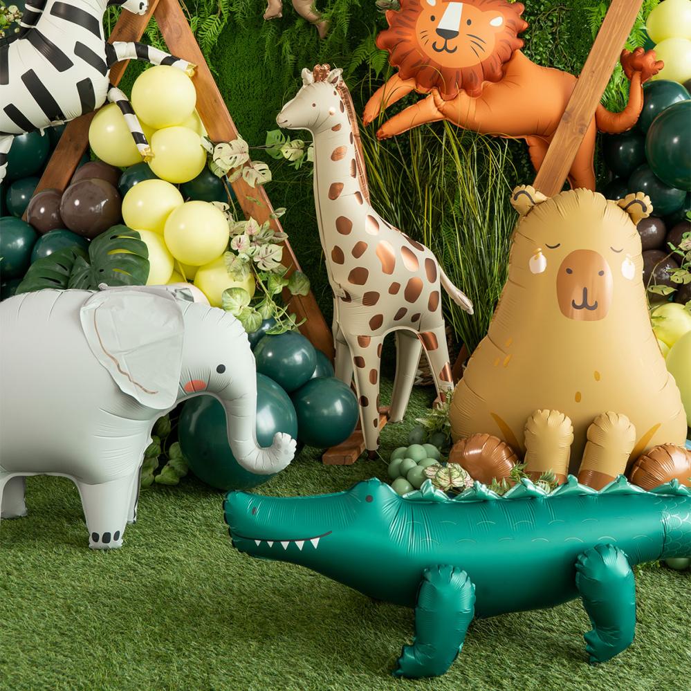 Til en fest med jungeltema bliver denne dyreballon i form af en krokodille en dekoration, der stjæler opmærksomheden fra enhver anden ballon. Som folieballon bliver den et charmerende dyr til en fest med et drilsk tema, næsten klar til at liste hen mod kagen.