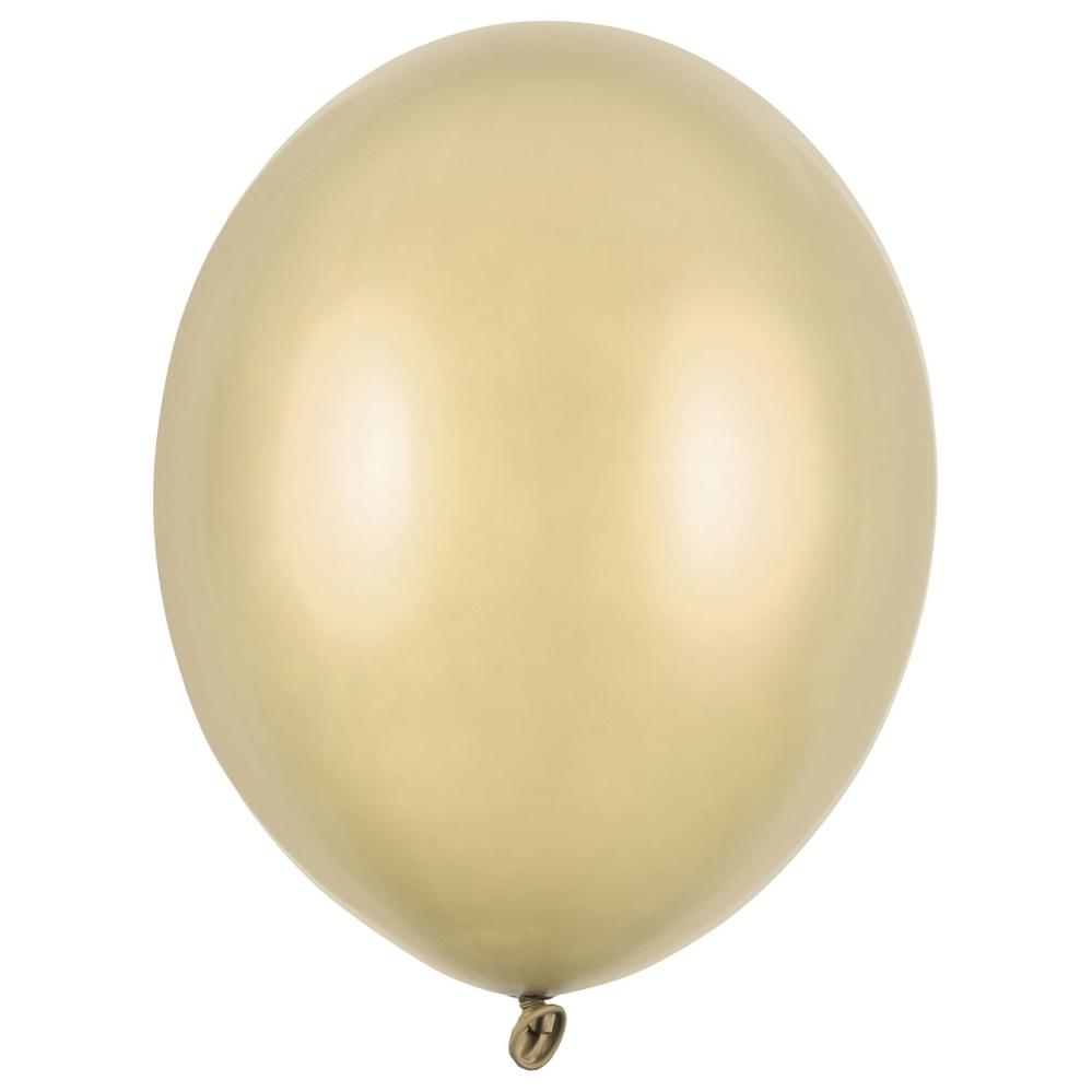 Stærke Balloner Metallic Lysguld 30 cm 100-pak indeholder 100 holdbare latexballoner i metallic lysguld.