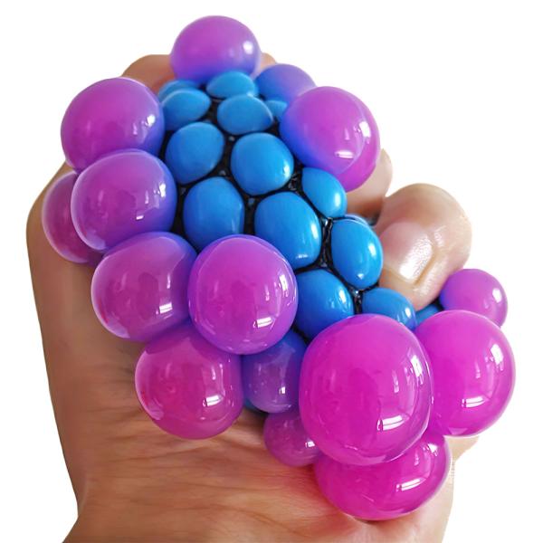 Stor, blød klembold i sjovt net til alle, der kan lide sjove klembaserede legetøj! Klem på stressbolden, så den presses ud af nettet for at se den magisk ændre farve. Den store størrelse gør den virkelig grebvenlig, samtidig med at den er ideel til leg med begge hænder. Denne fidget-bold er med andre ord en virkelig sjov stresslegetøj til både en og to hænder.