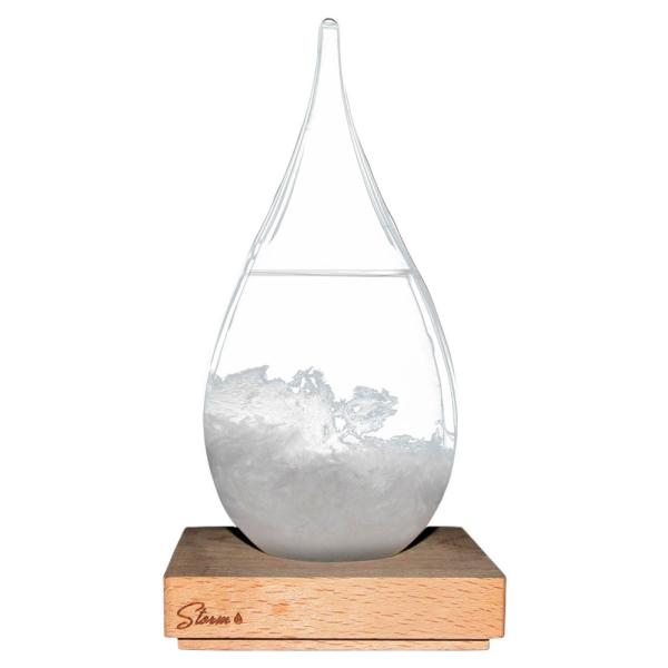Se, hvordan vejret bliver med dette seje stormglas! En virkelig flot stormvarsler i form af en dråbe med en dekorativ træstander. Denne vejralarm er fyldt med en væske med små krystaller indeni, som ændrer form efter vejret. Når krystallerne i vejralarmens væske er synlige, kan det blive dårligt vejr, men hvis væsken er helt klar, kan du derimod forvente godt vejr. Et virkelig sejt stormglas, som også ikke kun forudsiger vejret for dig, men også bliver en fantastisk dekoration til dit hjem!