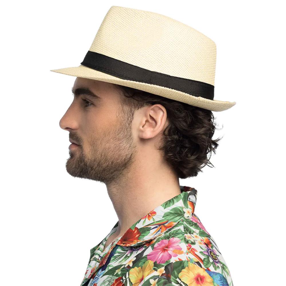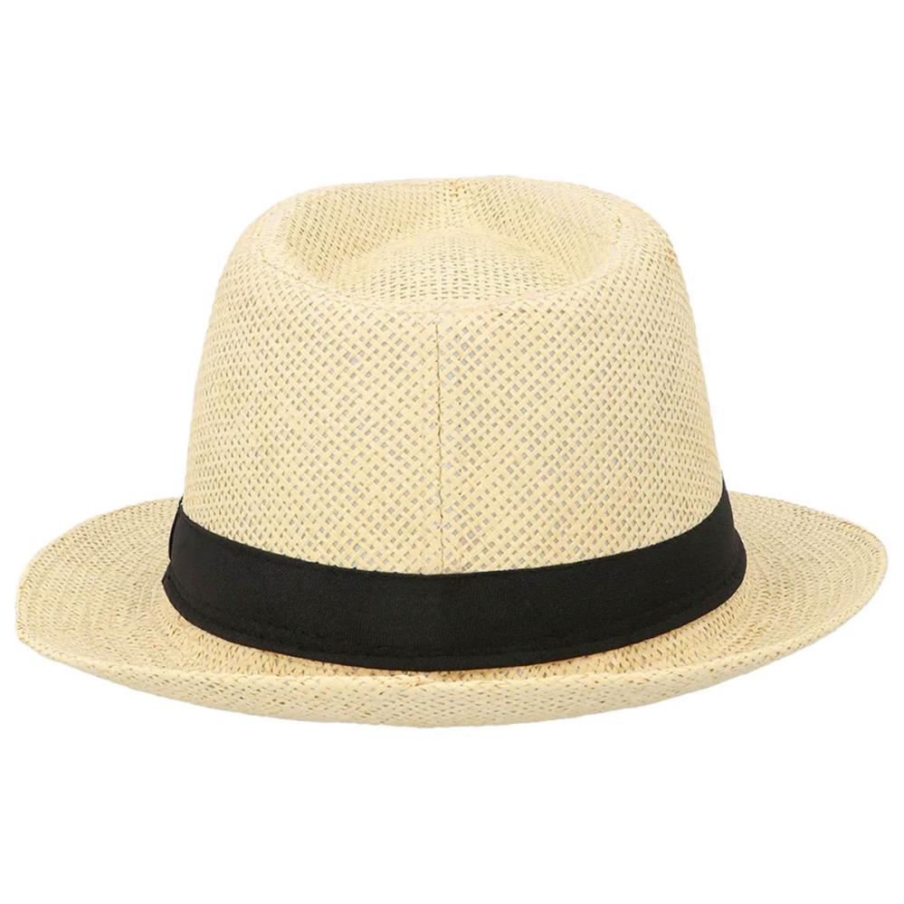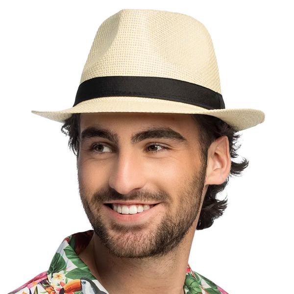 Stråhat Beige er en beige stråhat med et sort bånd rundt om.