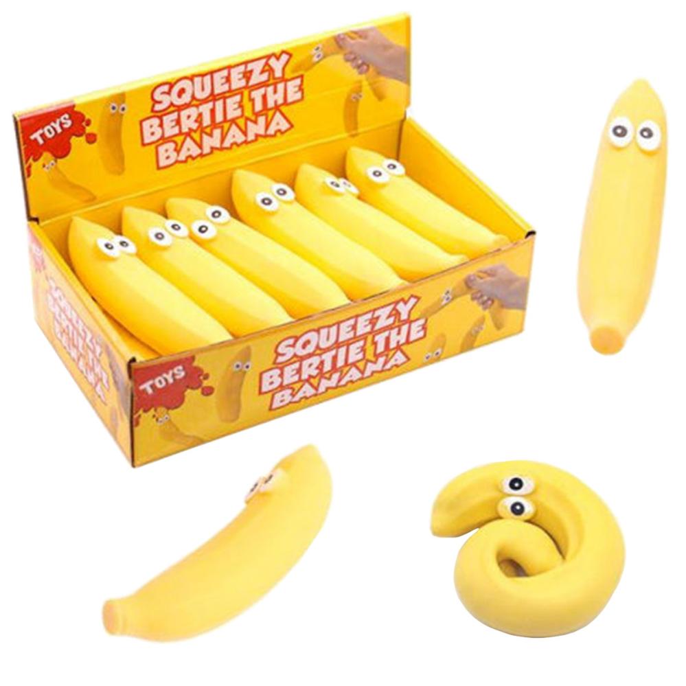 Denne klemmelegetøj ligner en sød, gul banan med øjne og er perfekt til afslapning. Brug den som stresslegetøj til at lindre spændinger i hverdagen. Den er sjov at klemme på og giver en behagelig følelse i hånden.