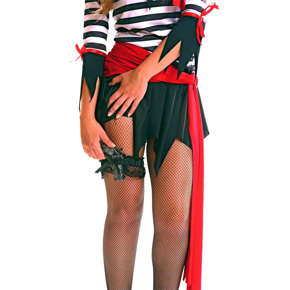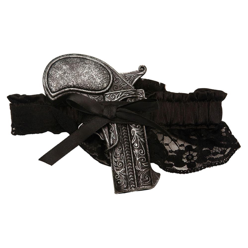 Skjul dit våben elegant under kjolen og vær altid klar til revolverduel med dette seje strømpebånd med pistol! Med denne legetøjspistol kan du nemt fuldende din gangsterudklædning. En sej maskeradeaccessory, der passer perfekt til enhver gangsterpige!