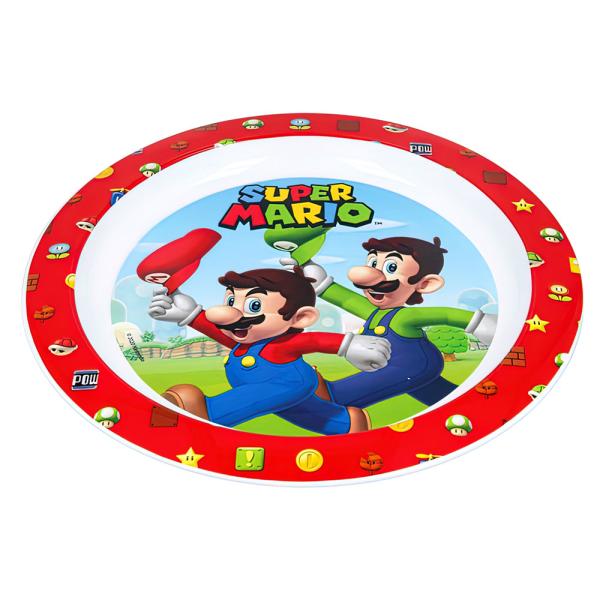 Super Mario tallerken omfatter en tallerken i forskellige farver med motiver af Super Mario og Luigi, teksten "Super Mario" samt klassiske symboler fra Nintendo. Tallerkenen er i BPA-fri plast og tåler mikroovn. Bør vaskes i hånden.