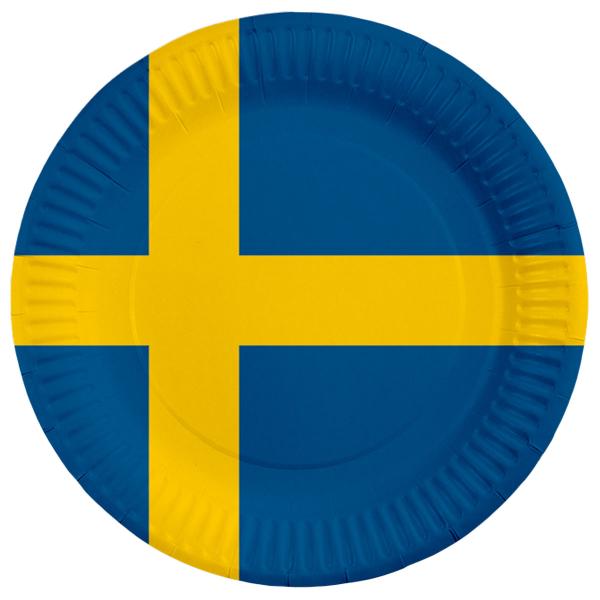 Svensk Flag Paptallerkener 23 cm 8-pak