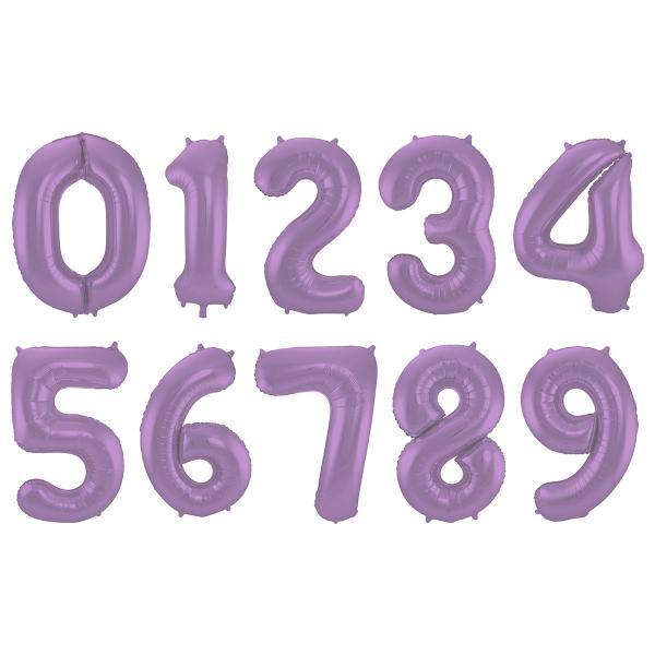 Talballon Lilla Matt Metallic omfatter en folieballon formet som et tal i en mat nuance af metallic lilla.