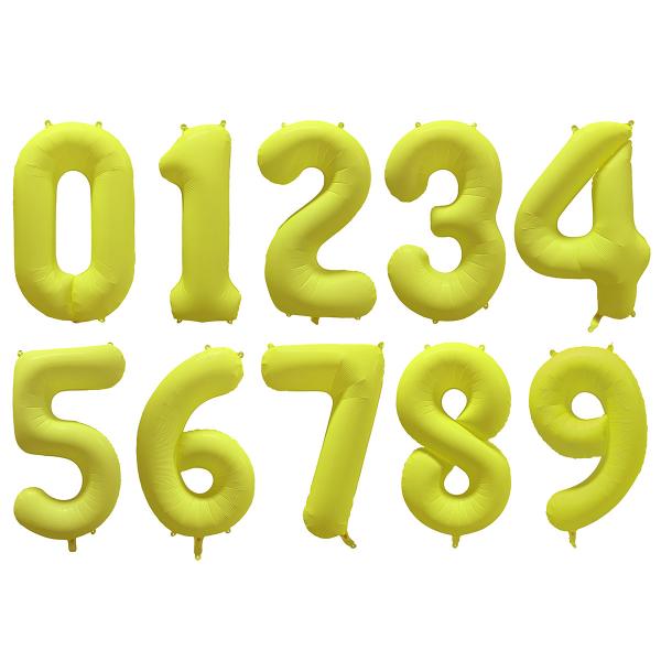 Talballon Neongul är en folieballon i form af en neongul siffra.