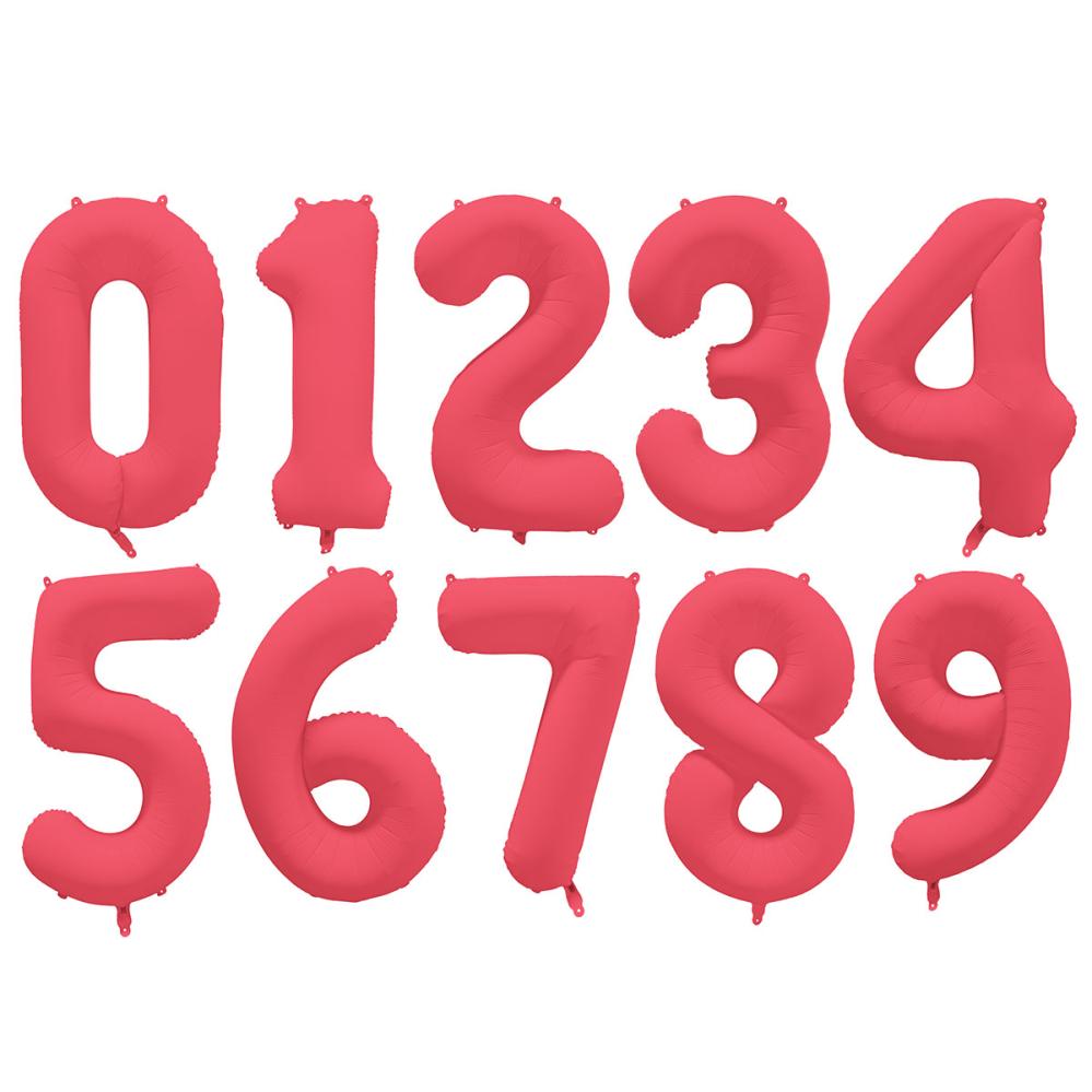 Talballon Neonrød er en folieballon formet som et neonrødt tal.