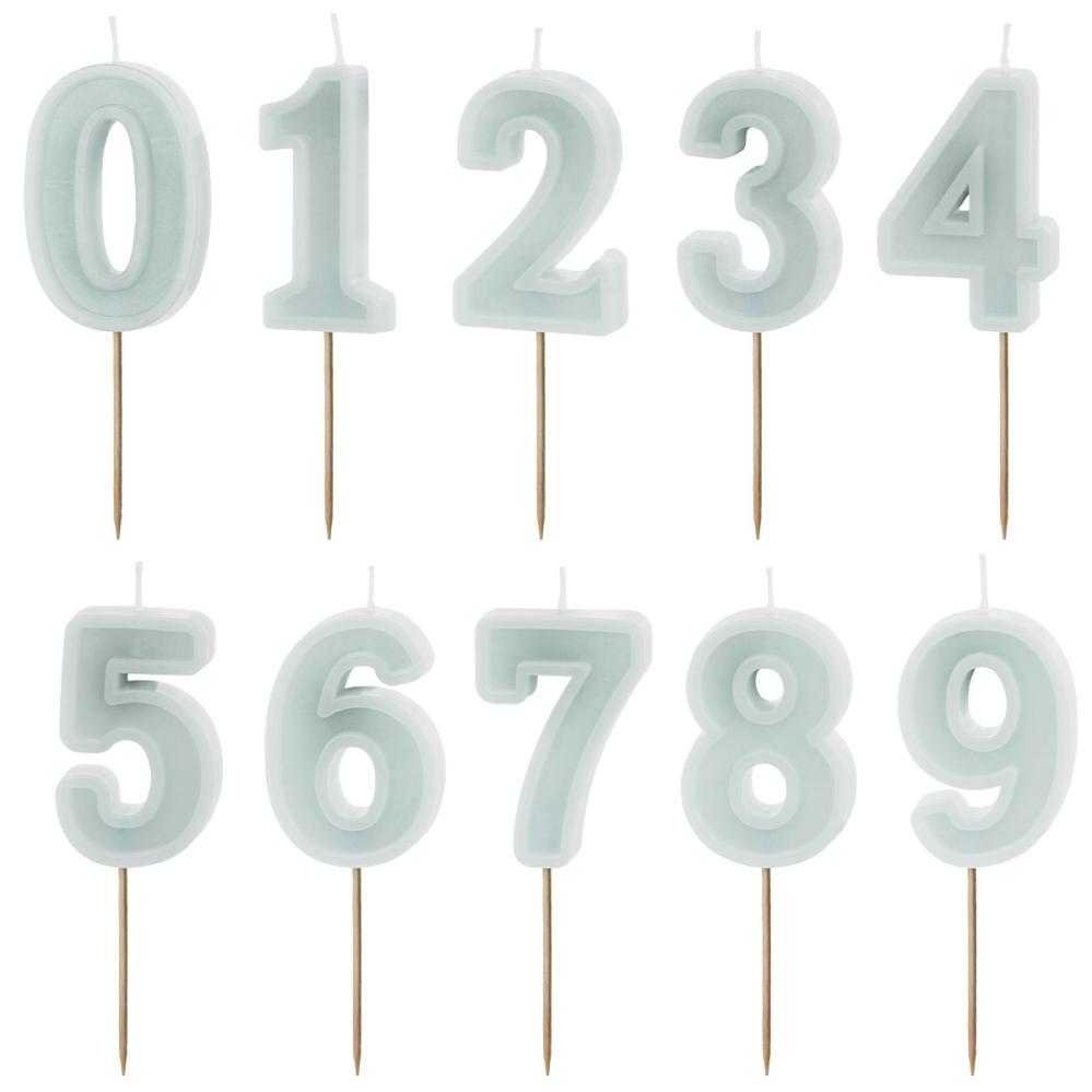 Tallys Lysemynte omfatter et kagelys formet som et tal i farven lysemynte.