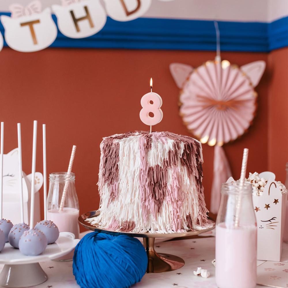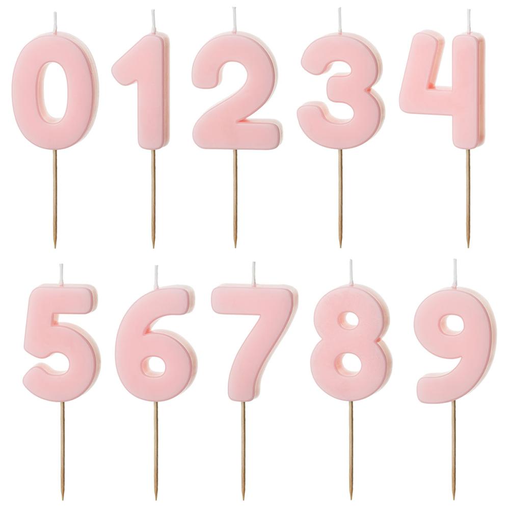Tallys Lyserød omfatter et kagelys i form af et tal i lyserød farve.