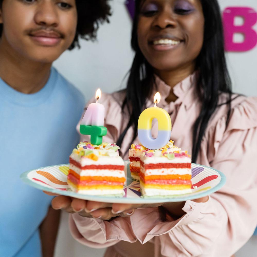 Gør kagen endnu festligere med Tallys Stripetastic. Disse farverige fødselsdagslys fås i tallene 0 til 9 og har en smart plastikpind, som gør hvert kagelys nemt at placere.