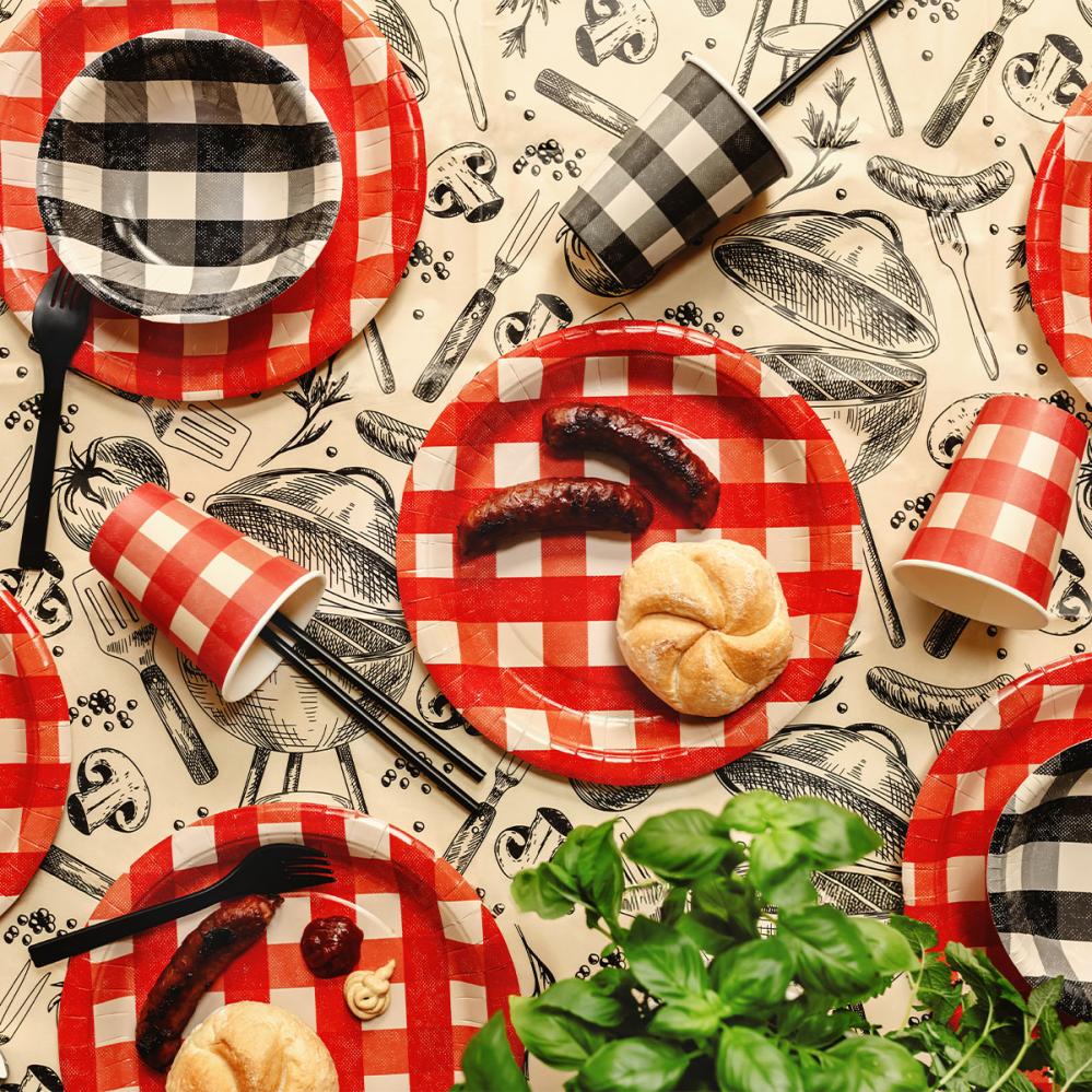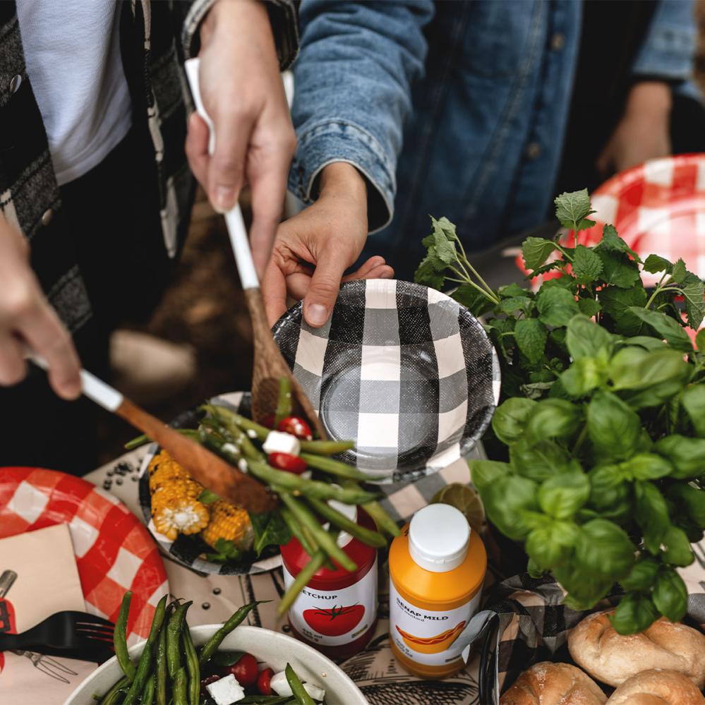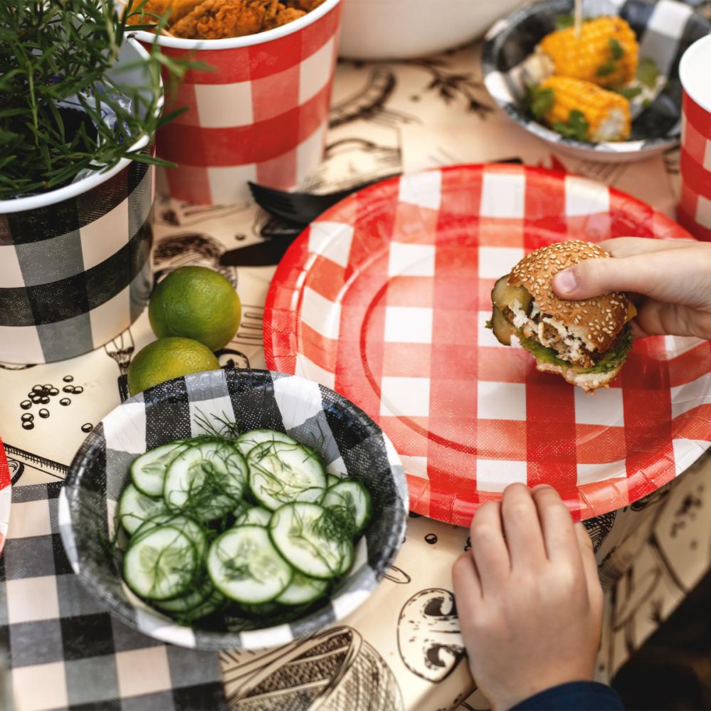 - Engangsskåle med ternet motiv