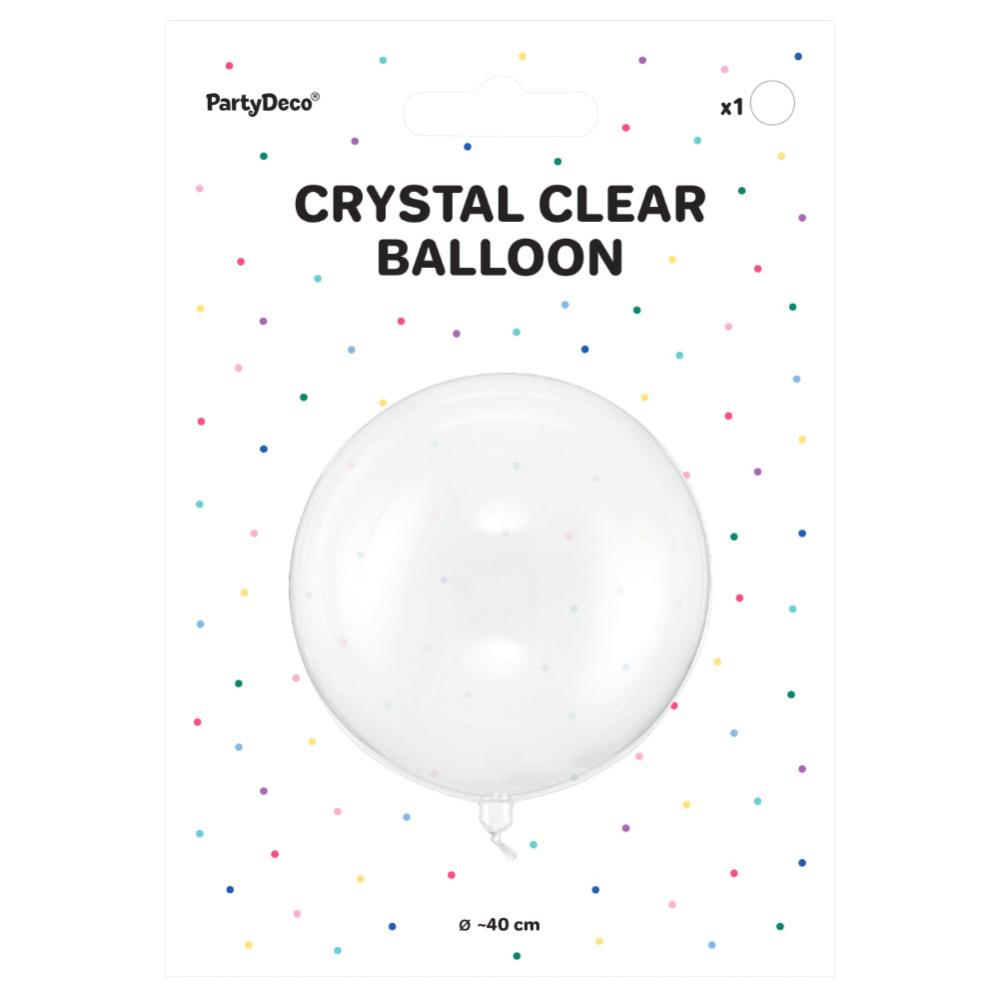 Transparent Orbz Ballon Crystal Clear omfatter en gennemsigtig ballon af strækbar plast. Ballonen fyldes med luft eller helium og bliver ca. 40 cm stor.