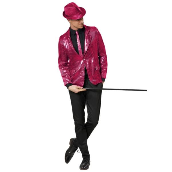 Trilby Hat Lyserøde Pailletter omfatter en lyserød gangsterhat med skinnende pailletter over hele hatten.