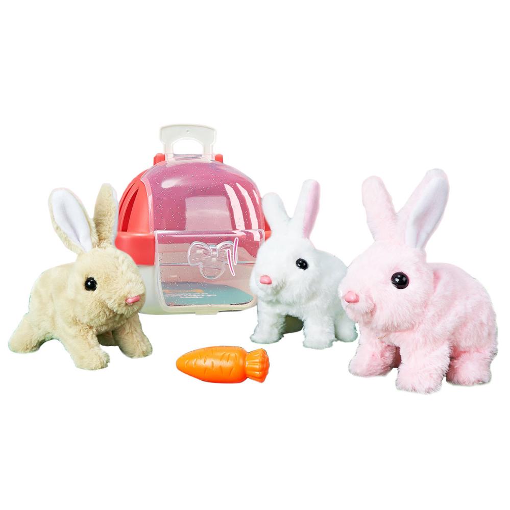 Vandrende Kanin med Gulerod & Transportkasse omfatter et stykke legetøj i form af en kanin som kan gå, lave lyde og bevæge munden, en orange gulerod samt en transportkasse i koral og hvid med bærehåndtag og glitrende transparent opklappeligt låg. Kaninen findes i farverne lysebrun, hvid eller rosa (farven vælges tilfældigt).