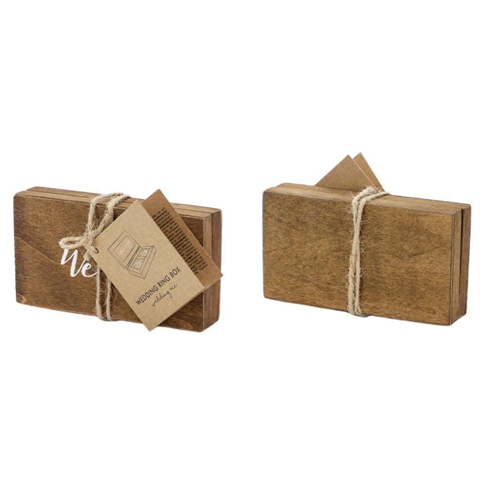 We Do Ringæske Træ omfatter en fin æske af mørkt træ med teksten "We Do" på ydersiden og teksten "Mr Mrs" på indersiden. Æsken er ca. 2,5 cm høj, 10 cm lang og 5,5 cm dyb.